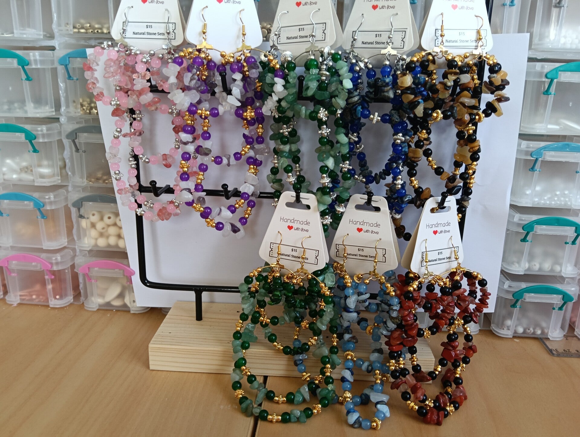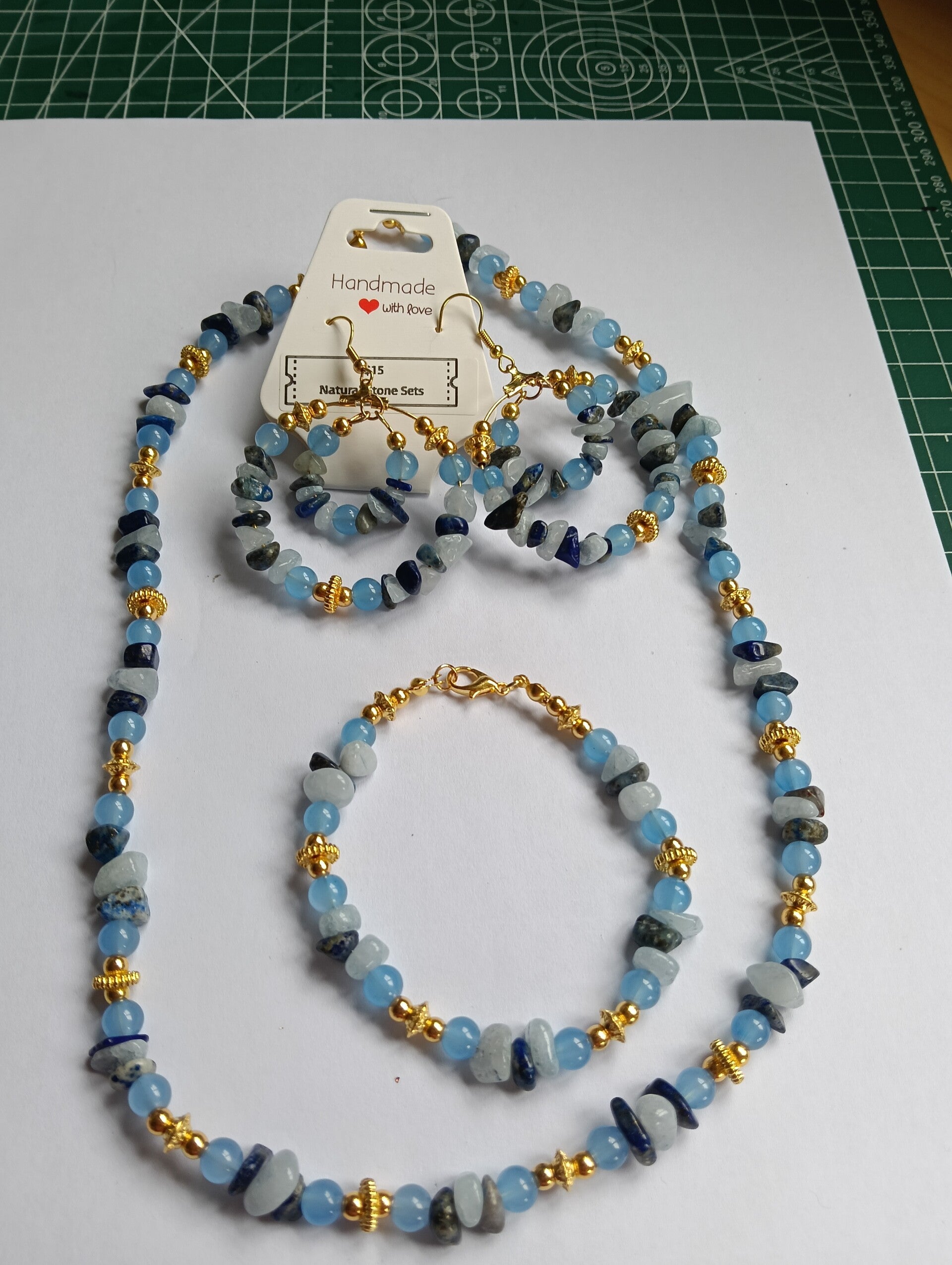 Enhance your style with our Natural Stone Crystals and Glass Beads Sets. Made with natural materials, these hoop earrings, bracelet, and necklace offer a unique, elegant look for any occasion. Experience the benefits of wearing these high-quality, versatile pieces crafted with precision and attention to detail.